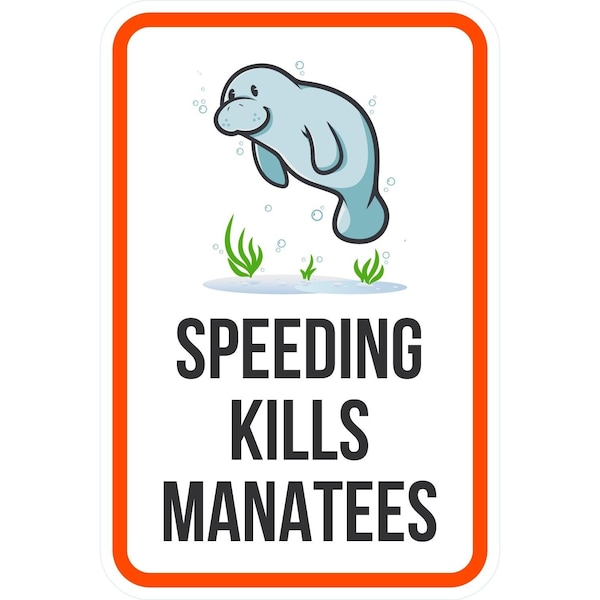 Speeding Kills Manatees, 12x18, Engineer Grade, White