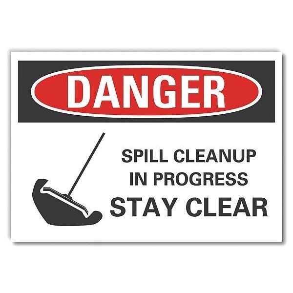 Spill Control Danger Label, Horizontal Rectangle, Number of Printed Sides 1, English, Sign Format ANSI/OSHA Format, Sign Legend Spill Cleanup In Progress Stay Clear, Sign Legend Background Color White, Sign Legend Style Symbol and Text