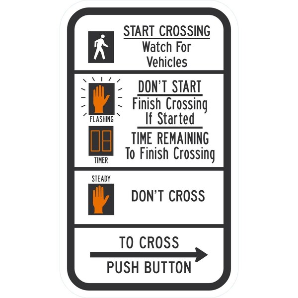 Start Crossing Watch For Vehicles, (hand/timer sym), 9x15, Engineer Grade, White