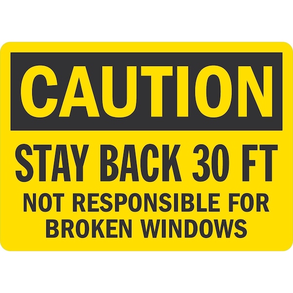 Stay Back 30 Ft. Not Responsible For Broken Windows, 7x5, Engineer Grade, Yellow