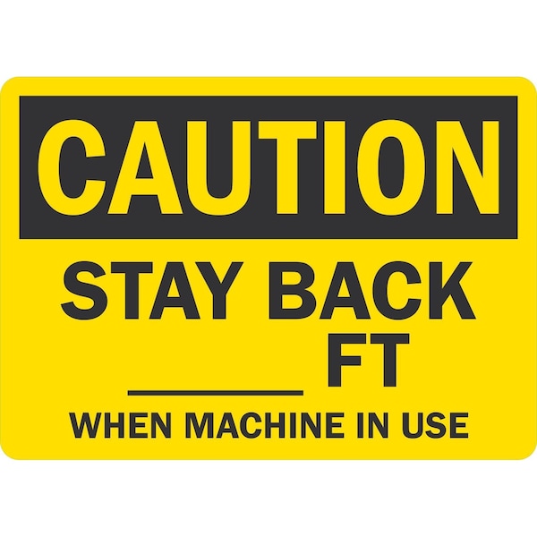 Stay Back Ft When Machine In Use (Write-On), 10x7, Non-Reflective, Yellow