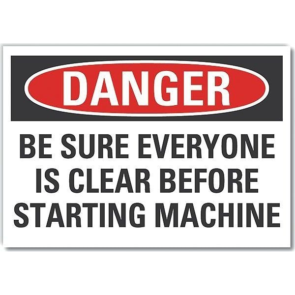 Stay Clear Danger Label, Horizontal Rectangle, Number of Printed Sides 1, English, Sign Format Traditional OSHA, Sign Legend Be Sure Everyone Is Clear Before Starting Machine, Sign Legend Background Color White, Sign Legend Style Text
