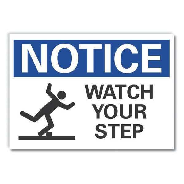 Steps Notice Reflective Label, Horizontal Rectangle, Number of Printed Sides 1, English, Sign Format ANSI/OSHA Format, Sign Legend Watch Your Step, Sign Legend Background Color White, Sign Legend Style Symbol and Text
