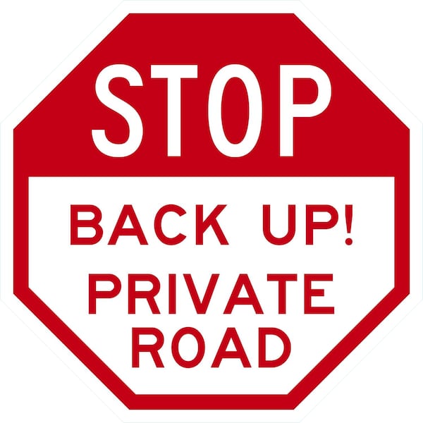Stop Back Up! Private Road, 12x12, Engineer Grade, White