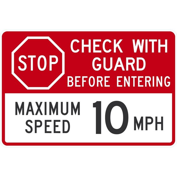 Stop, Check With Guard Before Entering, Maximum Speed 10 MP, 36x24, Diamond Grade, White