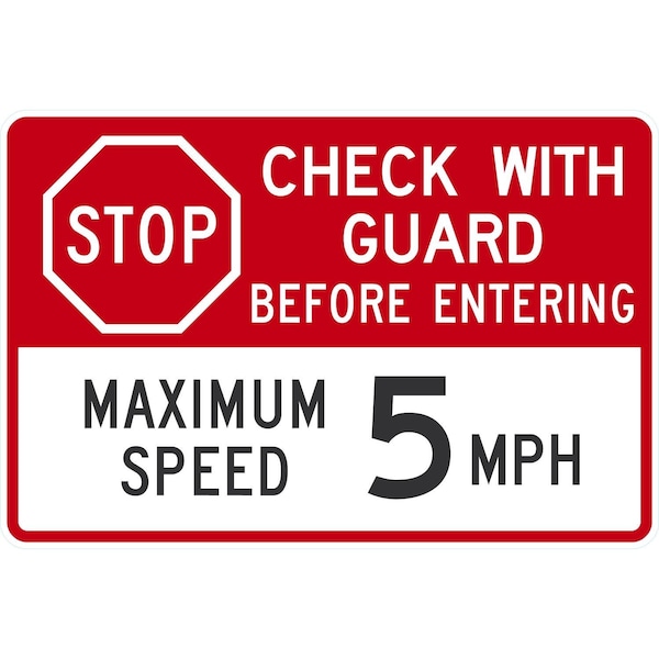 Stop Check With Guard Before Entering, Maximum Speed 5 MPH, 36x24, High Intensity Prismatic, White