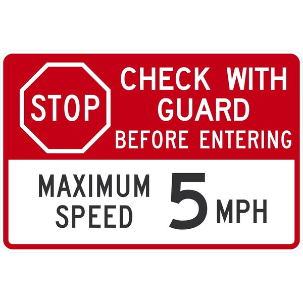 Stop Check With Guard Before Entering, Maximum Speed 5 MPH, 36x24, High Intensity Prismatic, White