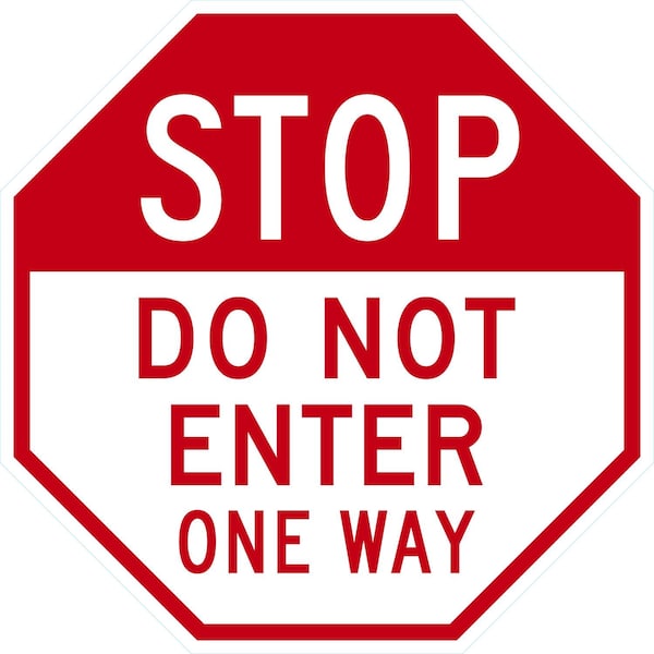 Stop Do Not Enter One Way, 24x24, Engineer Grade, White