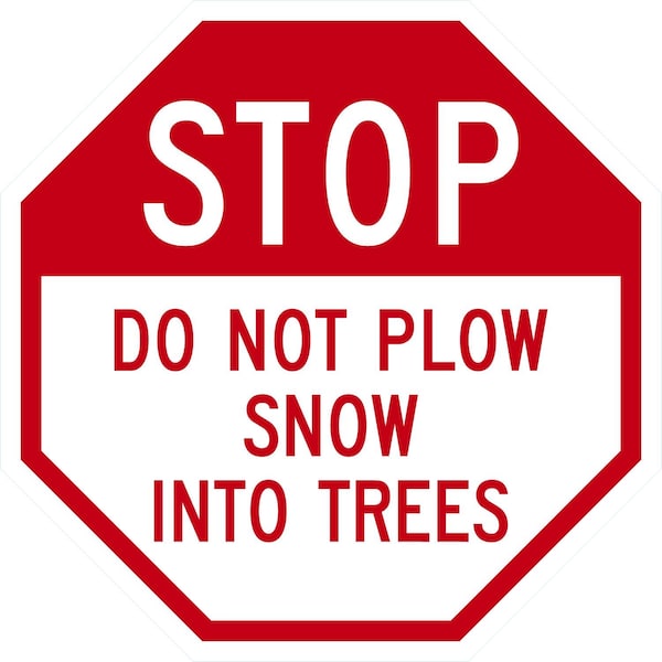 STOP, Do Not Plow Snow Into Trees, 12x12, Diamond Grade, White