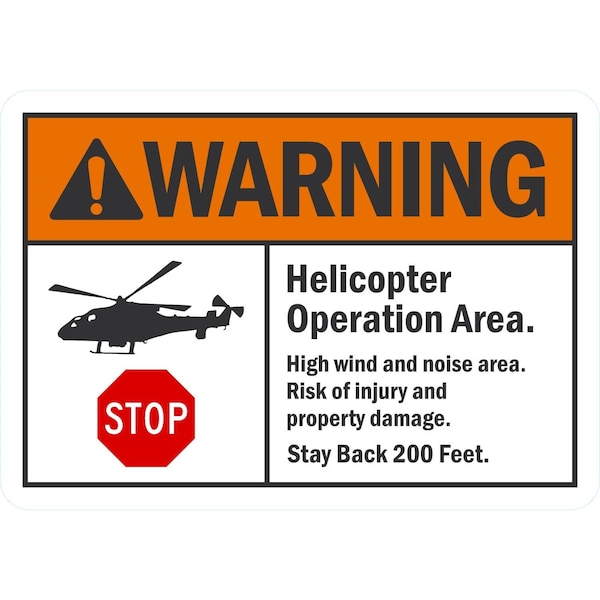 Stop Helicopter Operation Area. High Wind and Noise, 10x7, Non-Reflective, White