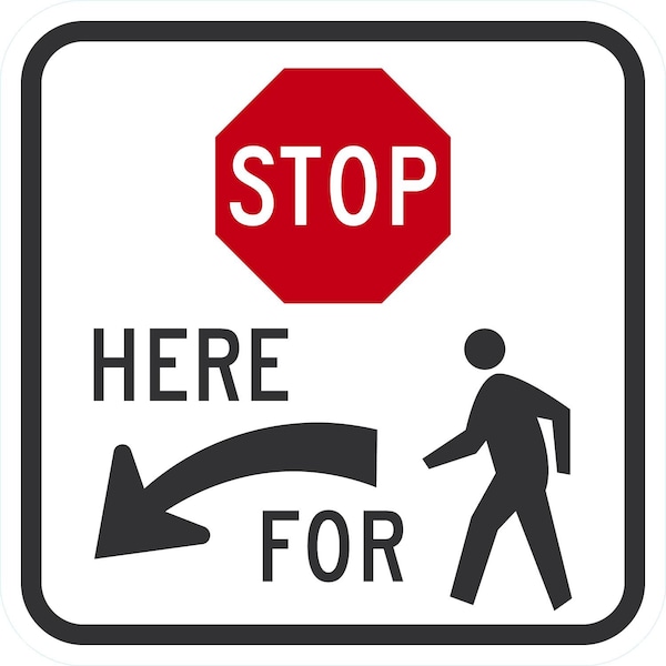 Stop Here (Left) for (Ped), 12x12, High Intensity Prismatic, White