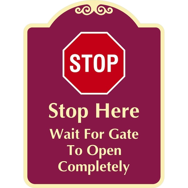 Stop Here Wait For Gate To Open Completely with Symbol, 12x18, Engineer Grade, Burgundy