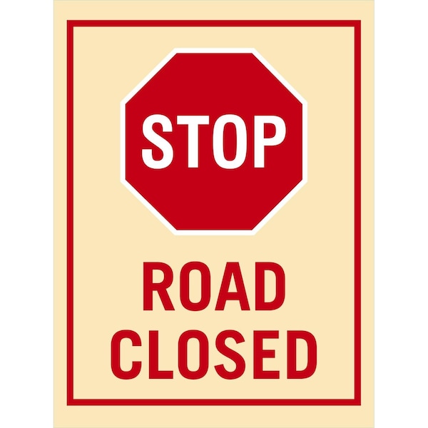 STOP, Road Closed With Rounded Top, 18x24, Engineer Grade, Tan