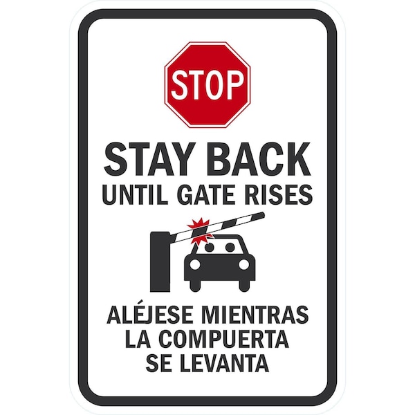 Stop Stay Back Until Gate Rises, 12x18, Engineer Grade, White