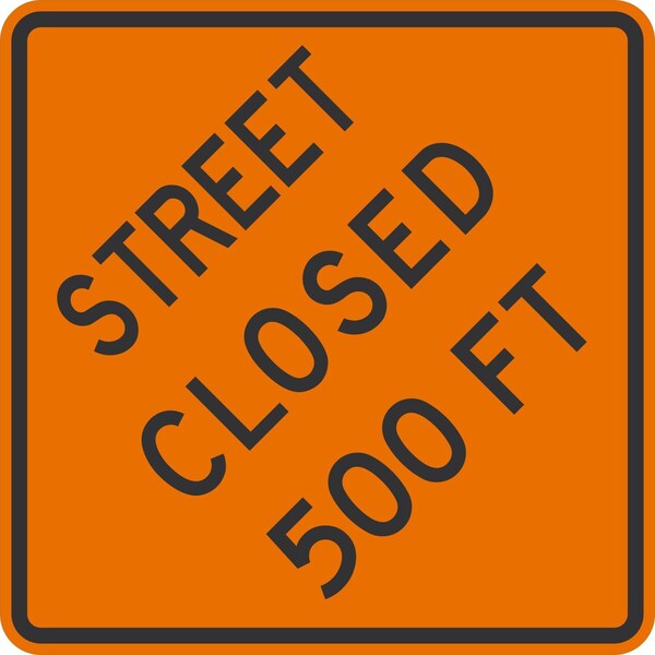 Street Closed 500 ft, 36x36, Engineer Grade, Orange