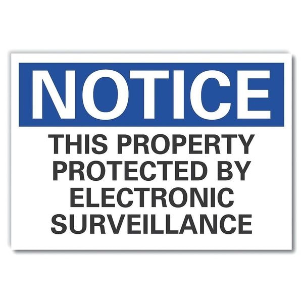 Notice Sign, Horizontal Rectangle, Number of Printed Sides 1, English, Sign Format ANSI/OSHA Format, Sign Legend This Property Protected By Electronic Surveillance, Sign Legend Background Color White, Sign Legend Style Text