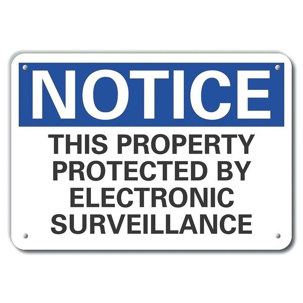 Notice Sign, Vertical Rectangle, Number of Printed Sides 1, English, Sign Format ANSI/OSHA Format, Sign Legend This Property Protected By Electronic Surveillance, Sign Legend Background Color White, Sign Legend Style Text