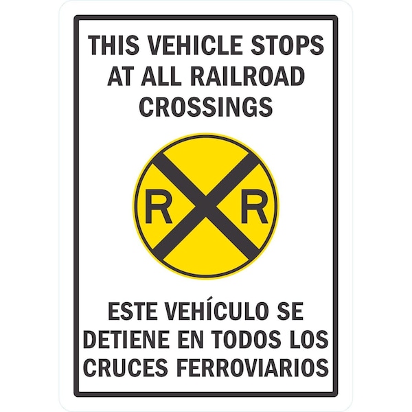 This Vehicle Stops At All Railroad Crossings (W/Sym), 10x14, Non-Reflective, White