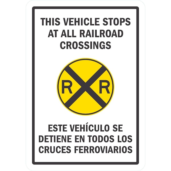 This Vehicle Stops At All Railroad Crossings (W/Sym), 7x10, Non-Reflective, White
