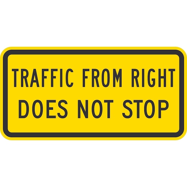 Traffic From Right Does Not Stop, 24x12, High Intensity Prismatic, Yellow