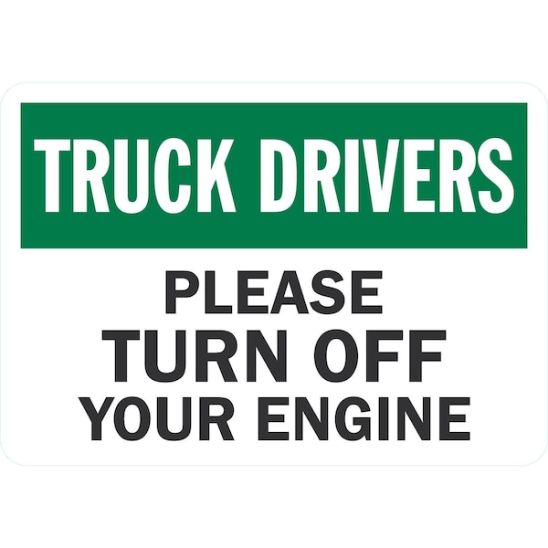 Truck Drivers Please Turn Off Your Engine, 10x7, Non-Reflective, White
