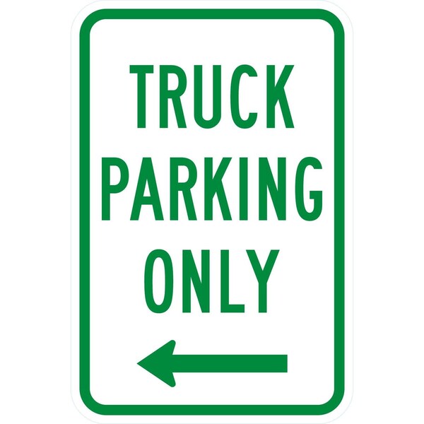 Truck Parking Only with Left Arrow, 12x18, Engineer Grade, White