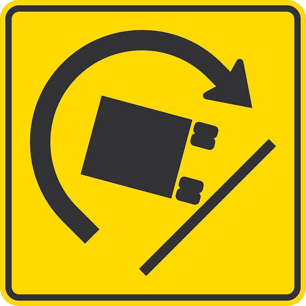 Truck Rollover Warning (Sharp Right Turn Symbol), 36x36, Engineer Grade, Yellow