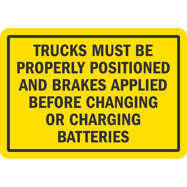 Trucks Must Be Properly Positioned And Brakes Applied, 7x5, Non-Reflective, Yellow