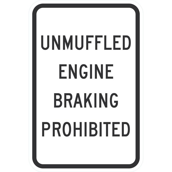 Unmuffled Engine Braking Prohibited, 12x18, High Intensity Prismatic, White