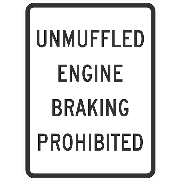 Unmuffled Engine Braking Prohibited, 18x24, Engineer Grade, White