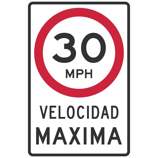 Velocidad Maxima (Maximum Speed) 30MPH, 24x36, High Intensity Prismatic, White