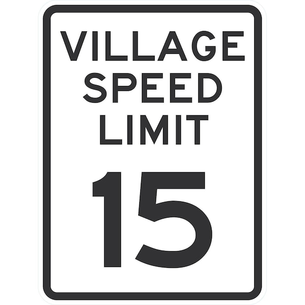 Village Speed Limit 15, 18x24, Non-Reflective, White