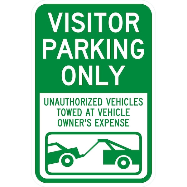 Visitor Parking Only, Unauthorized Vehicles Towed At, 12x18, Diamond Grade, White