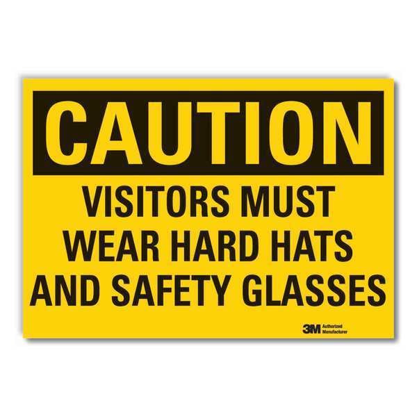Visitors Caution Reflective Label, Horizontal Rectangle, Number of Printed Sides 1, English, Sign Format Traditional OSHA, Sign Legend Visitors Must Wear Hard Hats And Safety Glasses, Sign Legend Background Color Yellow, Sign Legend Style Text