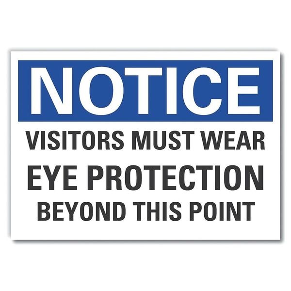 Visitors Notice Label, Horizontal Rectangle, Number of Printed Sides 1, English, Sign Format ANSI/OSHA Format, Sign Legend Visitors Must Wear Eye Protection Beyond This Point, Sign Legend Background Color White, Sign Legend Style Text