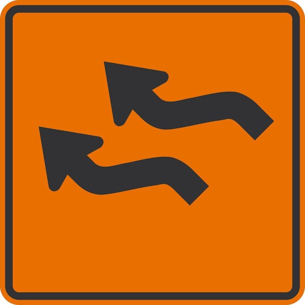W1-4BL, Double Left Reverse Curve Symbol, 36x36, High Intensity Prismatic, Orange