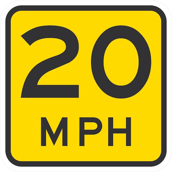W13-1, 20 M.P.H., Reduced Size, 12x12, Engineer Grade, Yellow