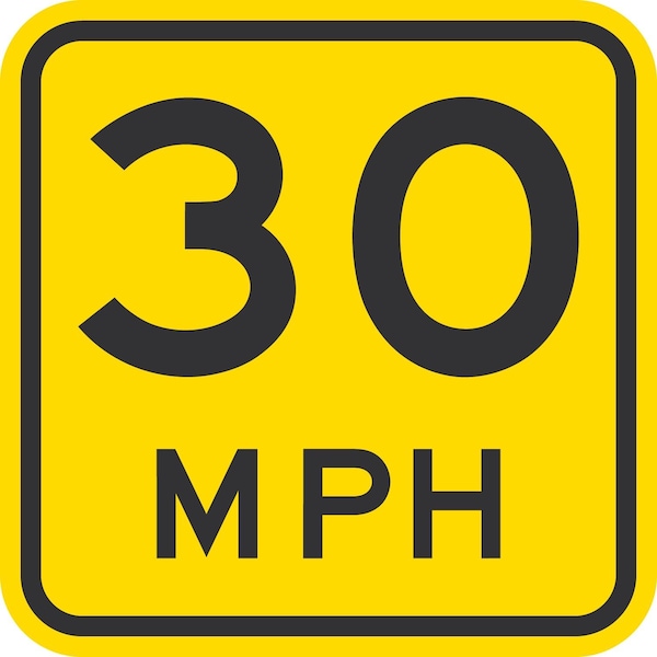 W13-1, 30 M.P.H., Reduced Size, 12x12, Diamond Grade, Yellow