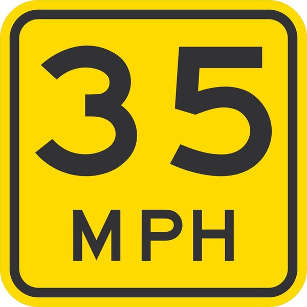W13-1, 35 M.P.H., Reduced Size, 12x12, Engineer Grade, Yellow