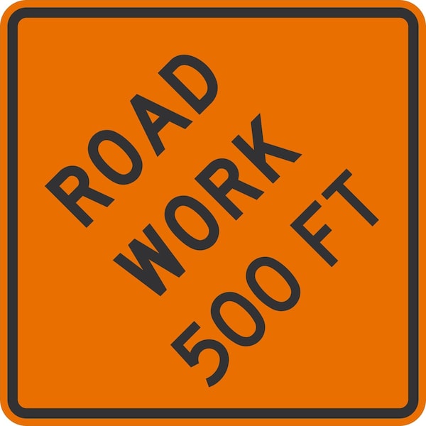 W20-1-500, Road Work 500 FT, 36x36, Engineer Grade, Orange