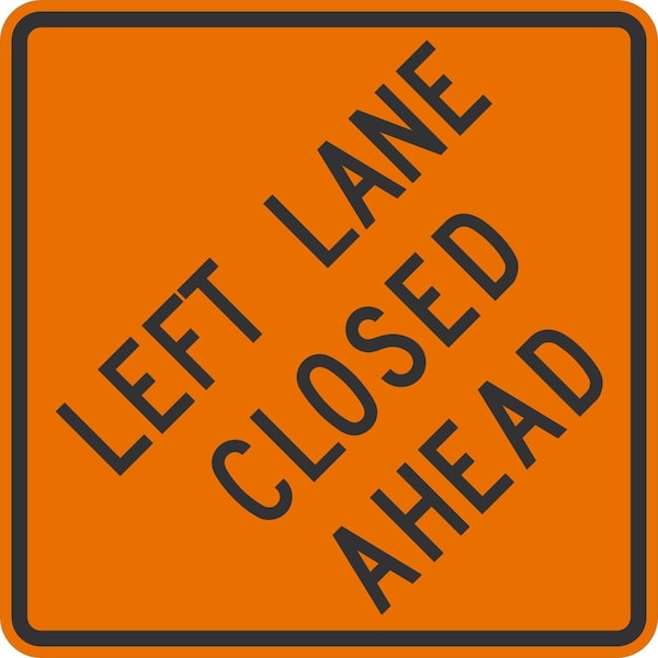 W20-5DL, Left Lane Closed Ahead, 36x36, Engineer Grade, Orange