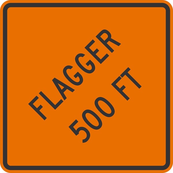 W20-7, Flagger 500 FT, The Wording, 36x36, Engineer Grade, Orange