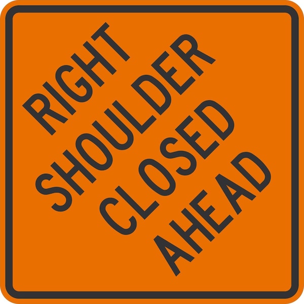 W21-5BR, Right Shoulder Closed Ahead, 36x36, Engineer Grade, Orange