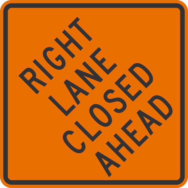 W9-3R, Right Lane Closed Ahead, 36x36, Engineer Grade, Orange