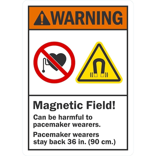 Warning Magnetic Field! Can Be Harmful To Pacemaker, 5x7, Non-Reflective, White