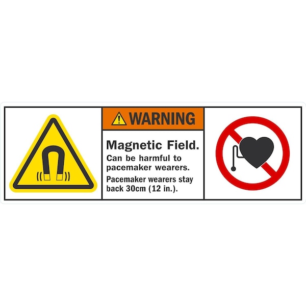 Warning Magnetic Field. Can Be Harmful To Pacemaker, 8.25x2.75, Non-Reflective, White