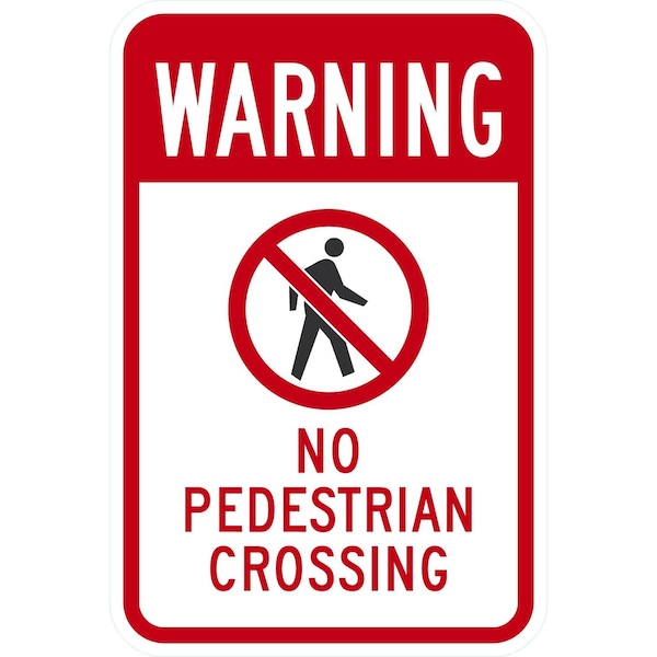 Warning No Pedestrian Crossing (w/sym), 12x18, Engineer Grade, White