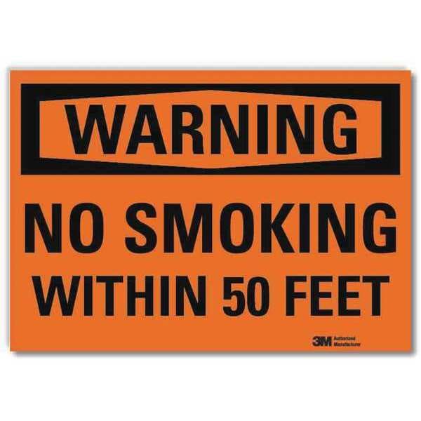 Warning No Smoking Sign, Horizontal Rectangle, Number of Printed Sides 1, English, Sign Format Traditional OSHA, Sign Legend No Smoking Within 50 Feet, Sign Legend Background Color Orange, Sign Legend Style Text
