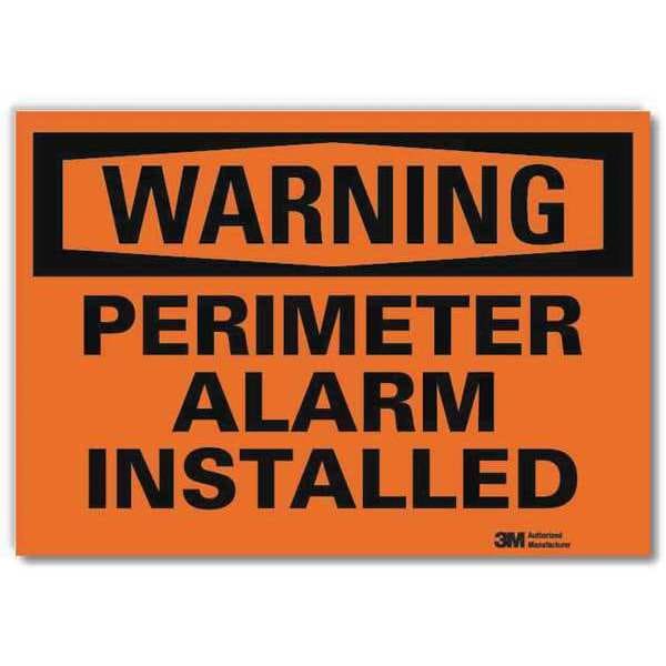 Security Sign, Horizontal Rectangle, Number of Printed Sides 1, English, Sign Format Traditional OSHA, Sign Legend Perimeter Alarm Installed, Sign Legend Background Color Orange, Sign Legend Style Text