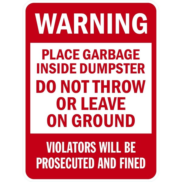 Warning Place Garbage Inside Dumpster, 18x24, Non-Reflective, White